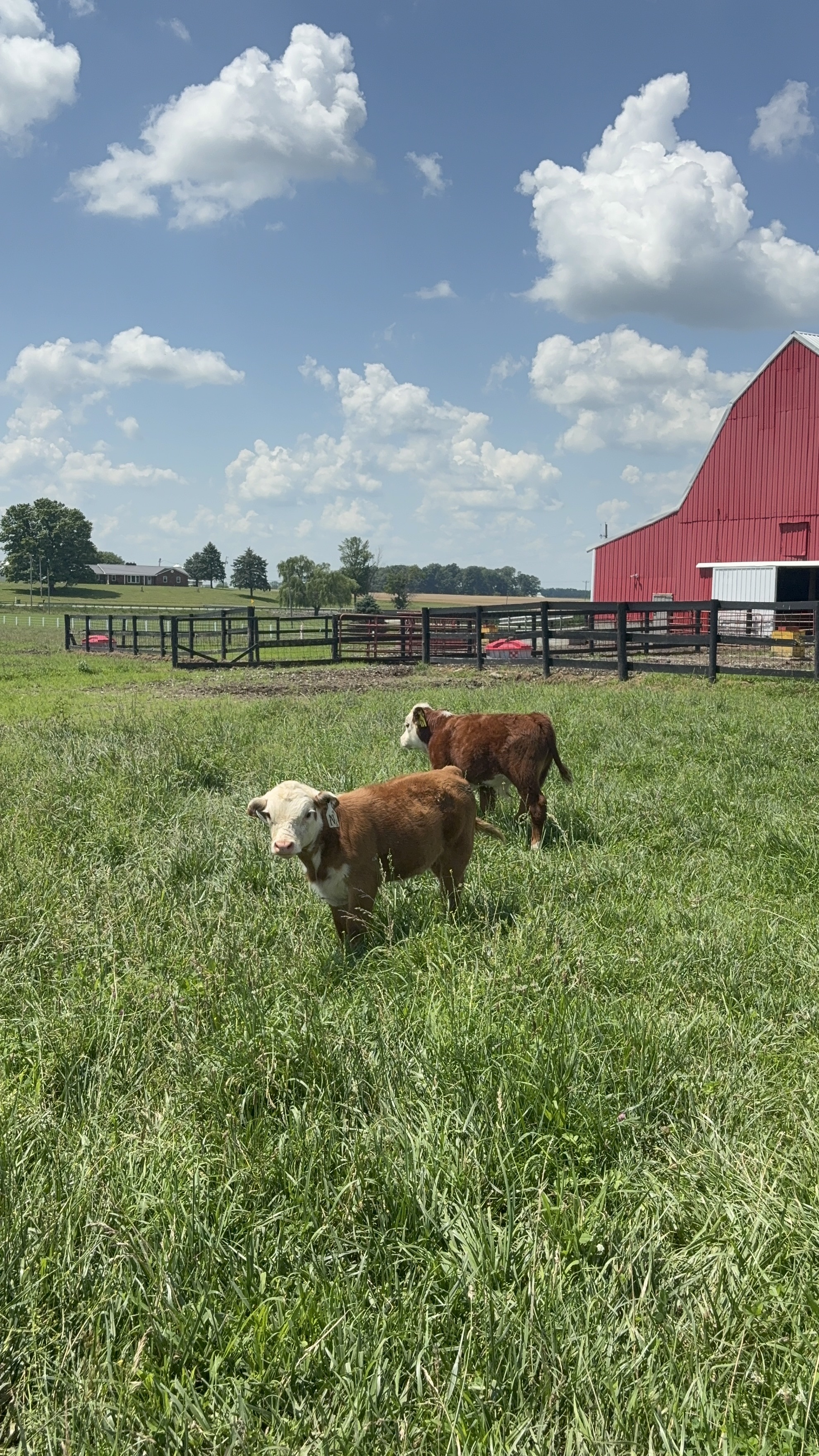We are the Baird’s! We both grew up on our family farms. Jared’s family grew corn and soybeans as well as produce and specialty crops. They also had a variety of livestock around including cattle, hogs, and goats. Kayla’s family focused on corn, soybeans, and wheat after phasing out of hog production when she was young. After Kayla graduated from Purdue College of Veterinary Medicine and starting practice in Indiana, we felt like we were in a place to make that dream a reality. We started our cattle herd with Gelbvieh cross commercial cattle in 2022. In 2023, we had the opportunity to shrink our herd (in stature!) by purchasing a registered bred miniature Hereford heifer and a cow calf pair. This set the foundation for what our mini herd is today.